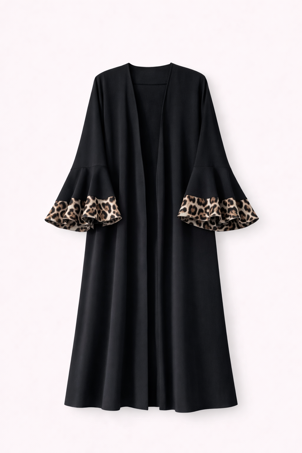 Open Abaya | Lightweight | Wide Leopard Print Sleeves